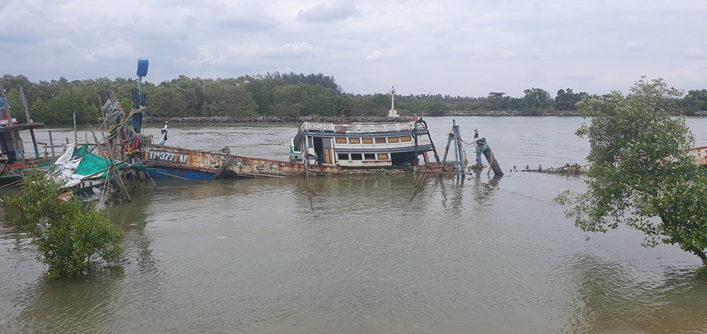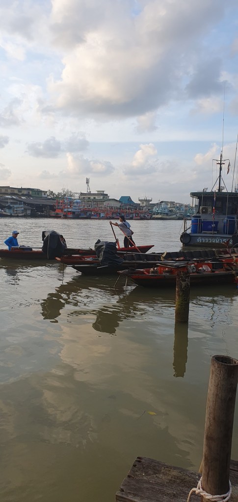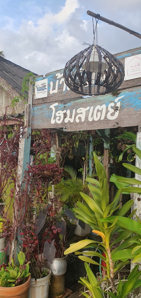 Un peu par hasard, je me suis retrouvé au Riverside Homestay de Pak Nam. On peut y aller en moto, mais c’est une galère absolue (aucun chauffeur de taxi ne savaient où ça se trouvait au terminal de bus, j’ai dû montrer le truc sur google maps)… alors qu’en bateau, il suffit de prendre un moto-taxi pour le marché de Pak Nam et traverser la rivière en bateau (10 bahts de jour, 20 bahts de nuit), les longtails tournent jour et nuit.